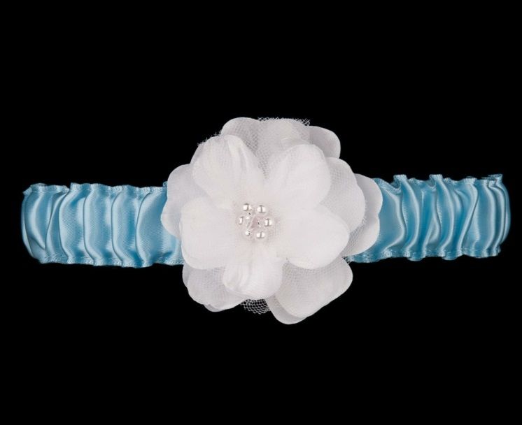 Очаровательная голубая подвязка на ногу, для ролевых игр. Подвязка украшена нежным белым цветочком с искусственными жемчужинами.