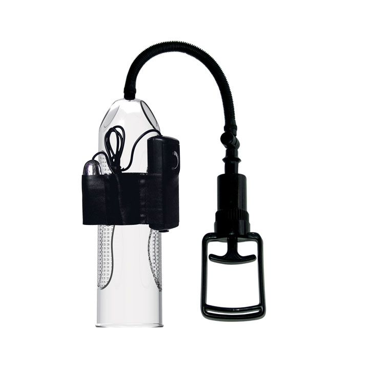 Вакуумная помпа с вибрацией, выполненная из прозрачного материала с уплотненной манжетой черного цвета, которая плотно обхватывает половой член, создавая полную герметичность. Воздух откачивается при помощи вакуумного шланга удобным механизмом откачки. Давление в колбе сбрасывается при помощи кнопки, расположенной на верхней части самой колбы. Механизм вибрации крепится к помпе с помощью эластичного материала с кармашком для виброяичка, которое управляется выносным пультом. Длина колбы - 24,5 см, диаметр - 7,3 см.Характеристики