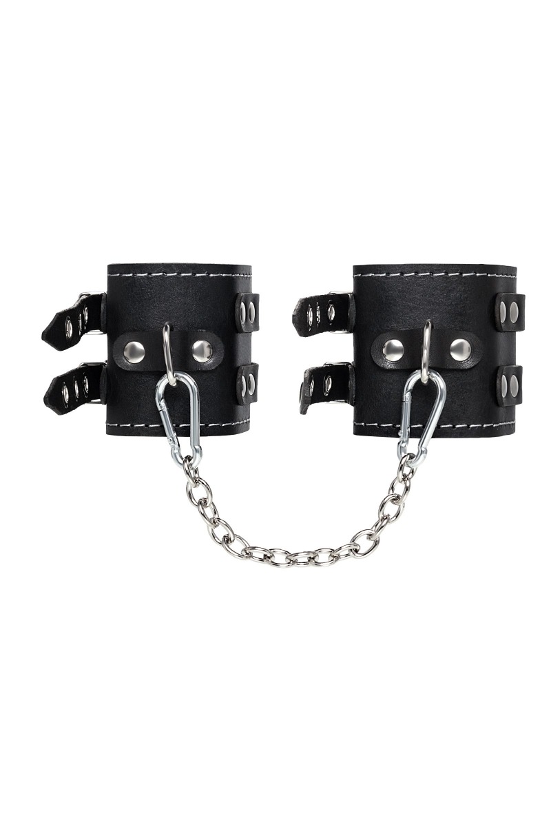 Эти кожаные оковы с двумя ремнями и красной подкладкой могут стать стильным аксессуаром, а могут послужить вашим целям по своему прямому назначению. Частичное обездвиживание и невозможность двигать руками или ногами дают вам полную власть над партнером – взрослые игры для взрослых. Наличие двух колец и карабинов, соединенных между собой металлической цепочкой, позволяет использовать изделие как раздельно – аксессуар-манжеты, так и как оковы для фиксации. К широким металлическим кольцам также можно присоединить и другие аксессуары при помощи карабинов. Благодаря универсальному размеру оковы могут использоваться и мужчинами, и женщинами. Размер легко регулируется с помощью металлических пряжек, органично вписывающихся в общий стиль. Длина манжет - 20 см, ширина - 7 см. Длина сцепки - 13 см.