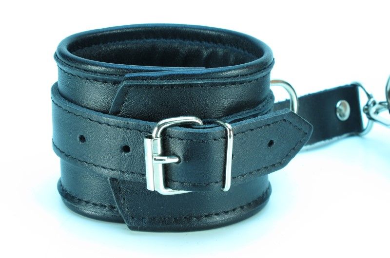 Оживить эротические игры Вам помогут поножи. Этот интимный аксессуар пользуется успехом у мужчин. Выполненные в черном цвете и украшены прочными ремешками. Модный интимный аксессуар не сдавливает и не нарушает кровообращение, так как изготовлен из мягкой кожи. Чтобы любимая никуда не убежала, поножи соединены короткой перемычкой. Длина манжет - 29,5 см., ширина - 5,7 см. Длина перемычки - 6 см.