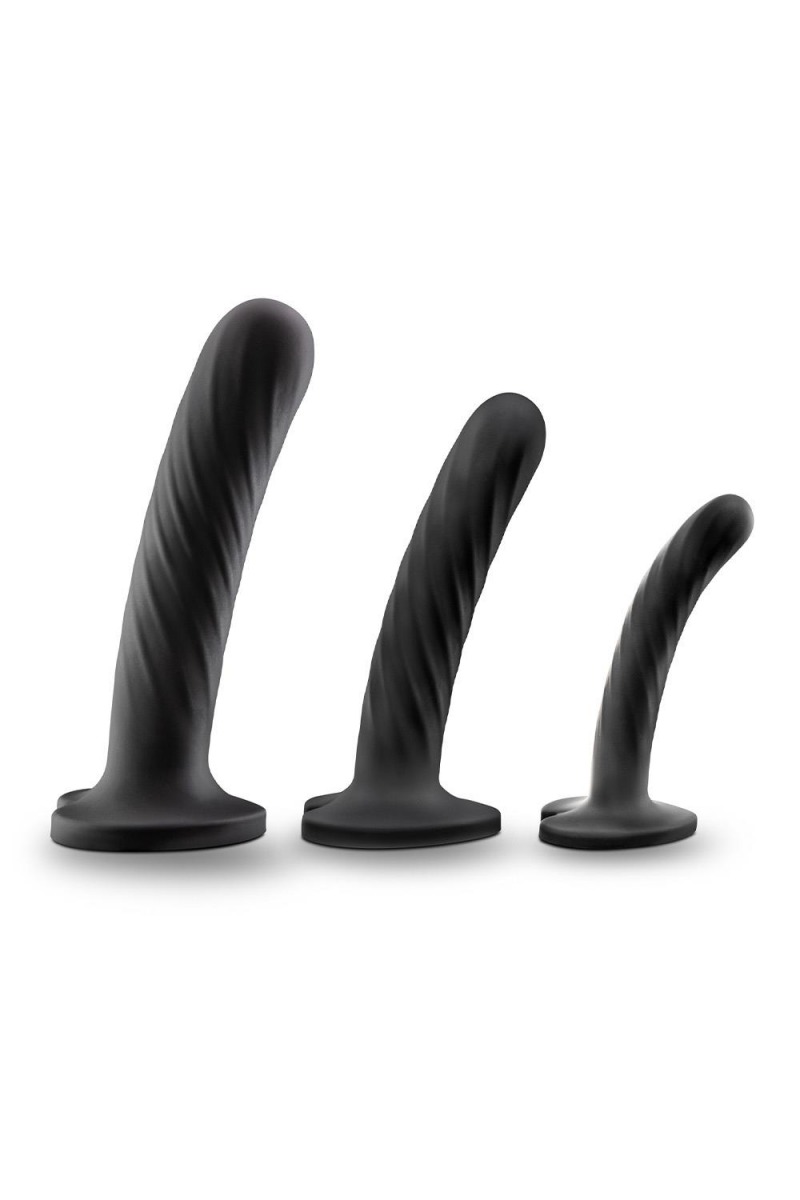 Набор из 3 стимуляторов со спиралевидным рельефом Twist Kit. В набор входят 3 фаллоимитатора разного размера, все с основанием-присоской. Идеальны для анальной стимуляции. Могут использоваться в качестве насадки для пояса харнесс с креплением насадок кольцами или через отверстие. Длина малого стимулятора - 9,5 см, диаметр - 1,9 см. Длина среднего стимулятора - 11,4 см, диаметр - 2,5 см. Длина большого стимулятора - 15,2 см, диаметр - 3,2 см.