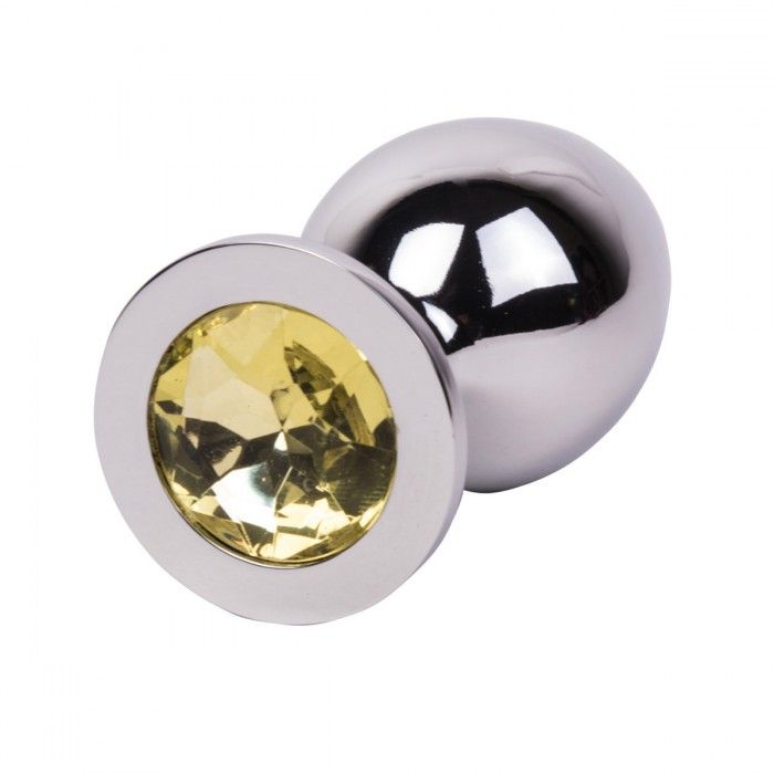 Гладкий большой плаг из отполированной до блеска стали с кристаллом лимонного цвета в основании. Металл - материал с большой теплопроводностью, сначала он будет прохладным, но быстро нагреется до температуры Вашего тела. Стальные игрушки можно нагревать или охлаждать с помощью воды.